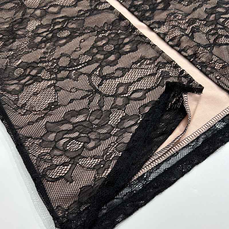 この黒ドレスは、繊細なレース素材で仕立てられており、エレガントな雰囲気を醸し出します。胸元のカップデザインと華奢なストラップが、美しいラインを引き立てます。ウエストに施されたチェーンベルトがスタイリッシュなアクセントとなり、マキシ丈のシルエットと相まって、洗練された印象を与えます。特別なシーンにもぴったりの一着です。