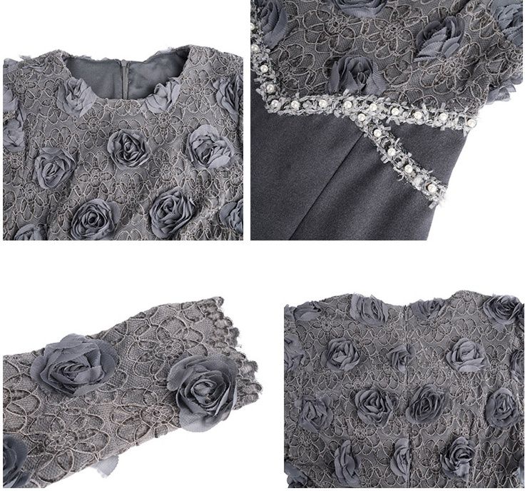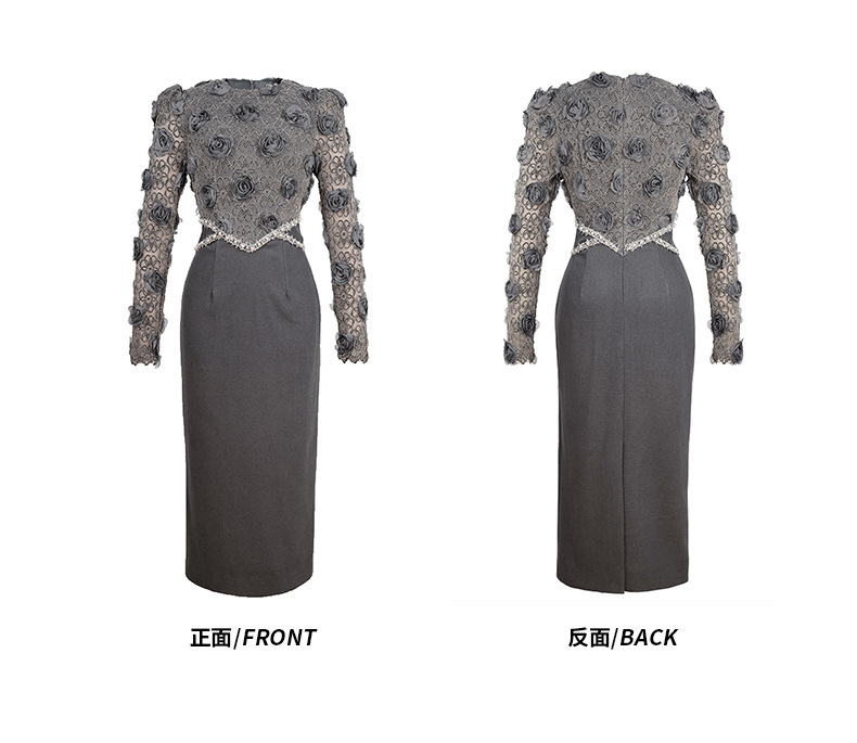 華やかな薔薇柄のシアーレーストップスとすっきりとしたスカート部分を組み合わせた黒ドレスです。
