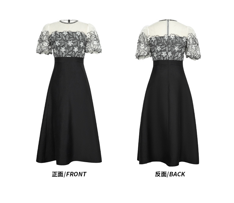 トップス部分の美しいレース刺繍が上品で洗練された印象を与えます