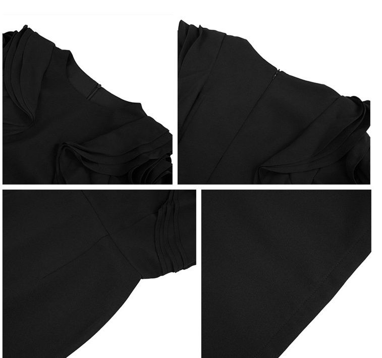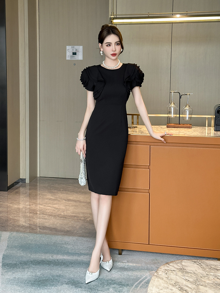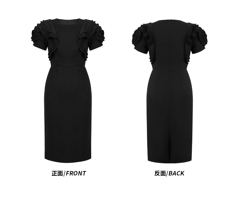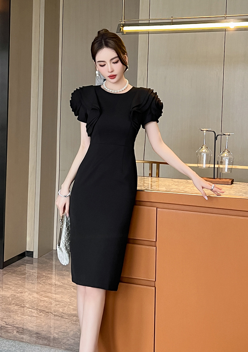 華やかなフリル袖が魅力的な黒ドレスです。