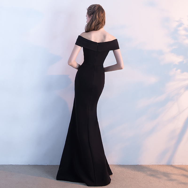 エレガントな黒ドレスは、体のラインを美しく引き立てるマーメイドシルエットが特徴。オフショルダーデザインとマキシ丈により、上品で洗練された印象を与える一着。特別なパーティーやフォーマルなシーンで、華やかさを演出し、周囲の視線を集めること間違いなし。スタイルを選ばず、どんな場面でも魅力を引き出すアイテム。